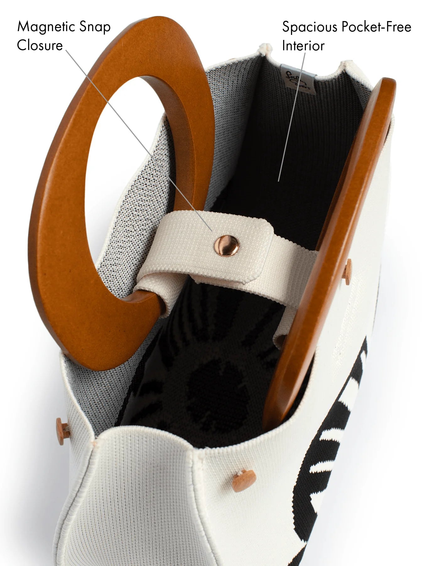 Crafted from a durable poly knit that holds its shape even when empty, this small yet spacious bag is perfect for carrying all your essentials. Its compact size makes it easy to carry, while its versatile design ensures you always have the perfect accessory to match your outfit. Simply swap the cover for a fresh look—it's like having a different bag every time!