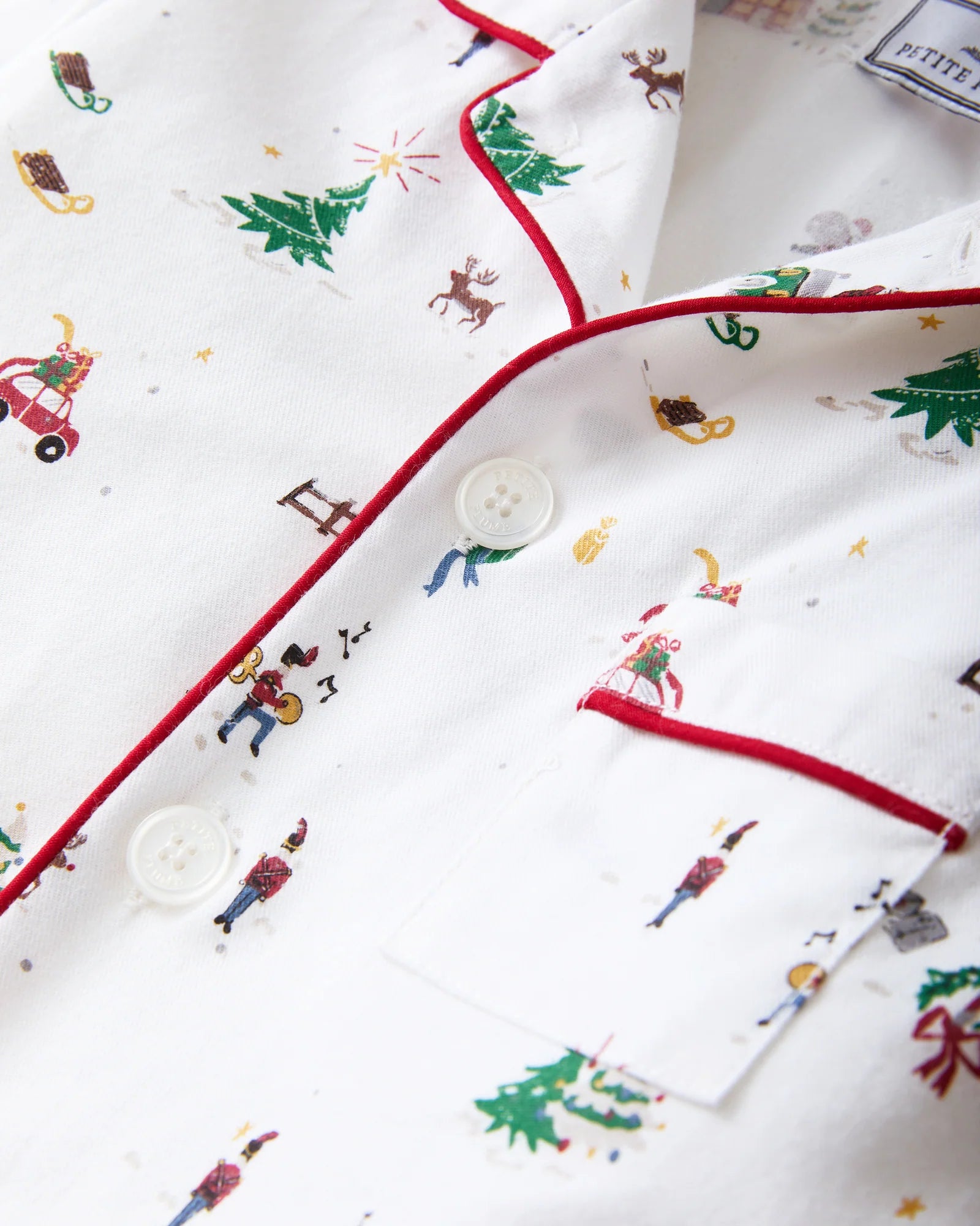 The joyful sights of this peaceful holiday village will take you down memory lane. Santa winds his way through town, while vintage cars and wooden sleighs glide past pristine wintry decorations. The twill design is comfortable and durable, with sweet touches like logo buttons and crisp piping. Colors stay true after multiple washes, so you can rest easy knowing it'll remain a wardrobe favorite.