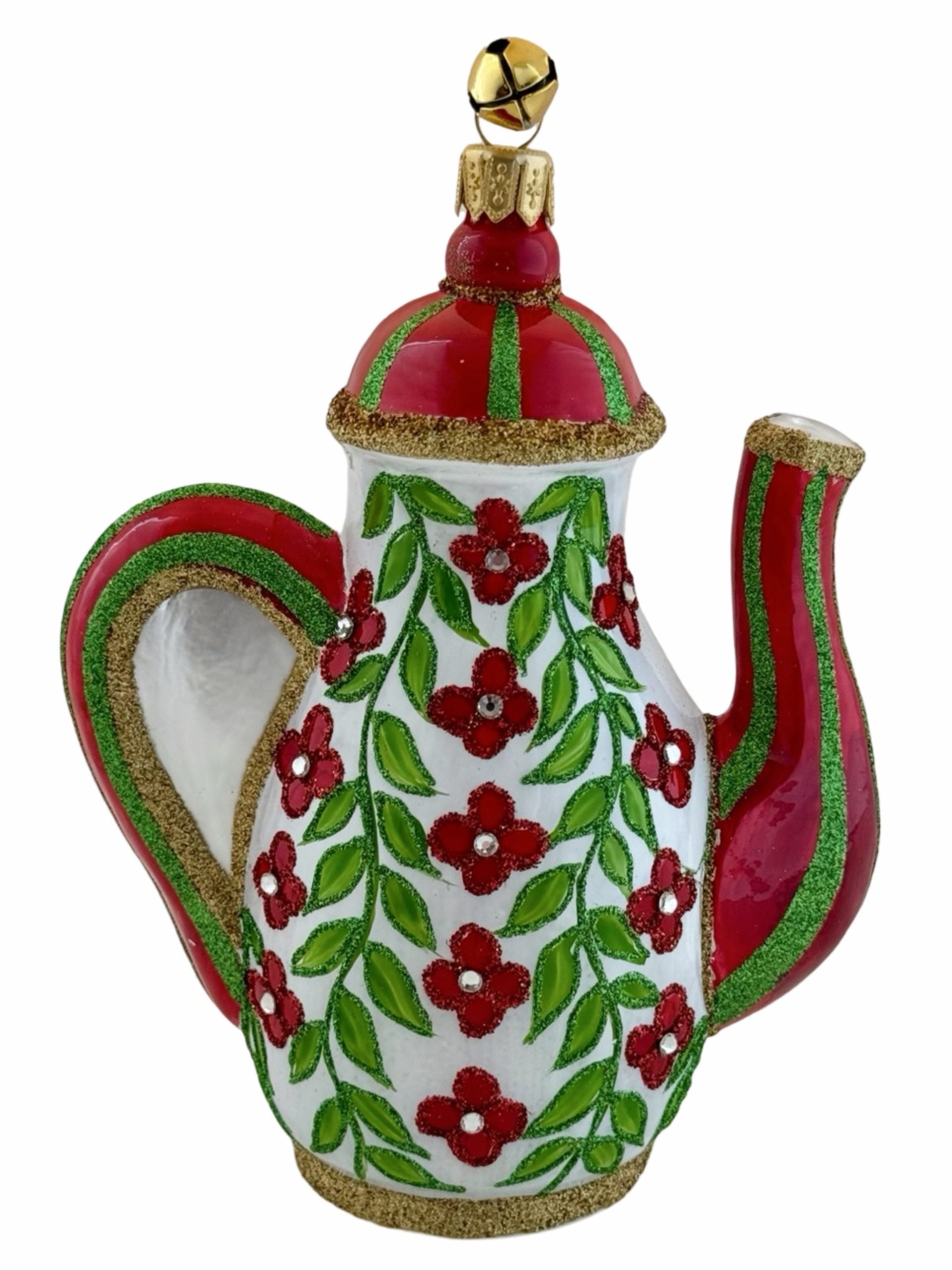 - Hand Blown Glass Holiday Teapot Christmas Tree Ornament Decoration