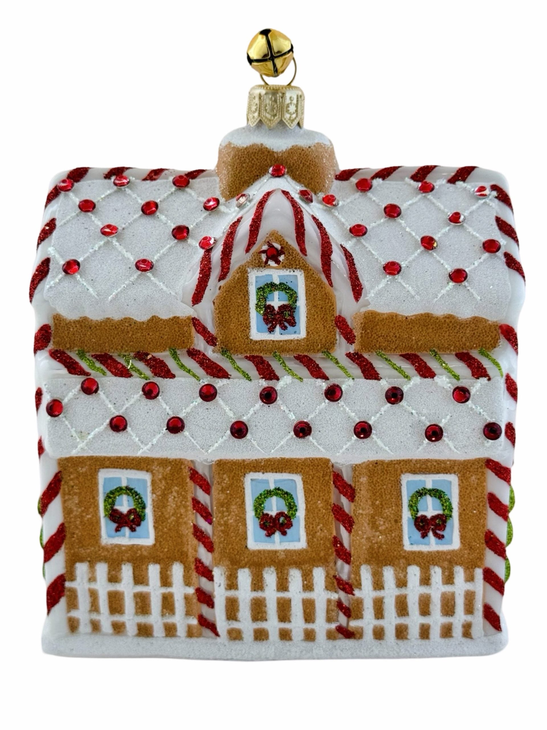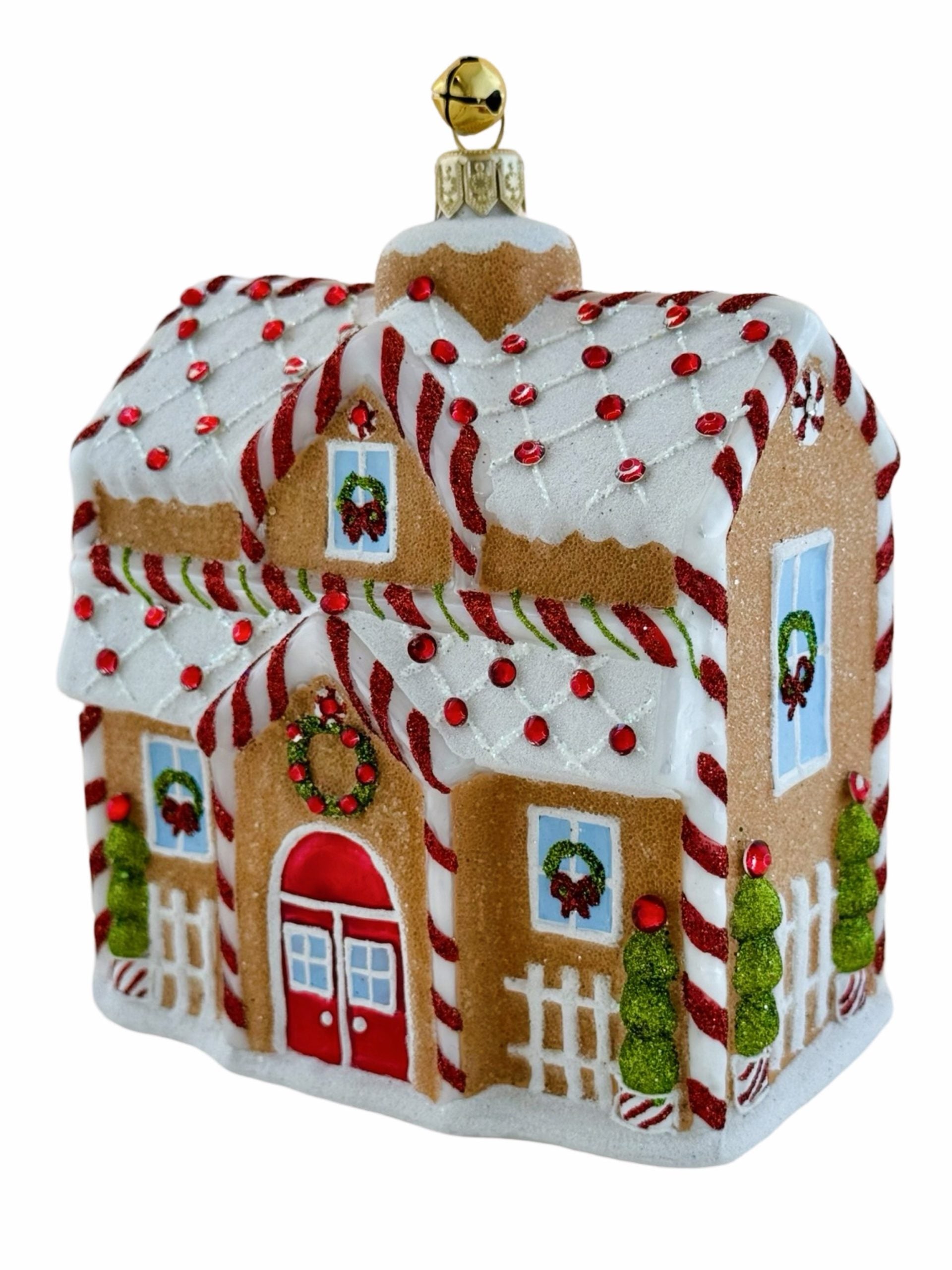- Unique Sterling Silver Lined Hand Blown Glass Gingerbread House Christmas Ornament