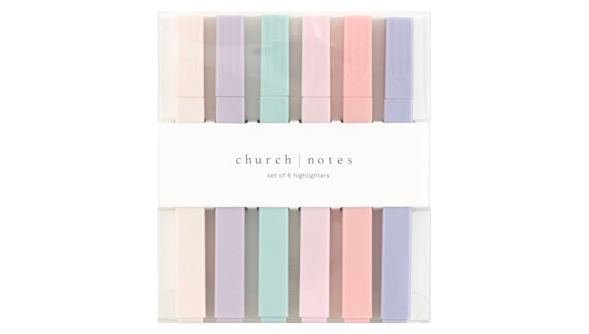 Add some color to your Bible study sessions with our Pastel Highlighter Set! With 6 trendy shades of soft pinks, purple, blue and green, these highlighters make adding a touch of color to notes and text easy and enjoyable! Plus, thanks to their quick-dry, no-bleed technology, you can make sure your special words are clear and beautiful. Highlight important verses and passages in your bible and other favorite books, or handwritten notes in your Church Notes notebooks. Whether you're treating yourself or surprising a friend, these highlighters are sure to become an essential companion for your Bible study journey.