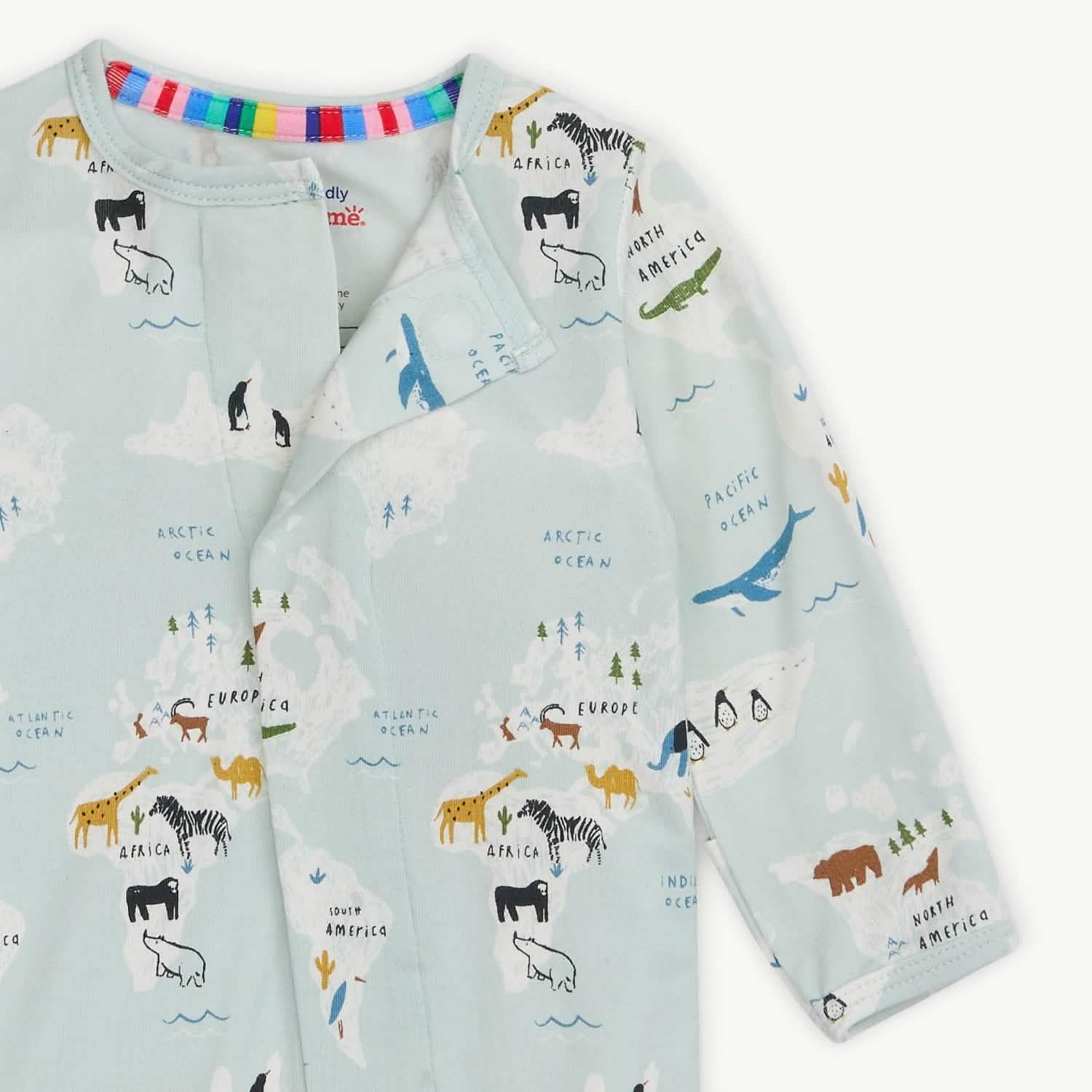 - Magnetic closures: magnets line the seam from the neck to upper thigh for sizes up to 0-3m & from neck to crotch for sizes 3-6m and up.