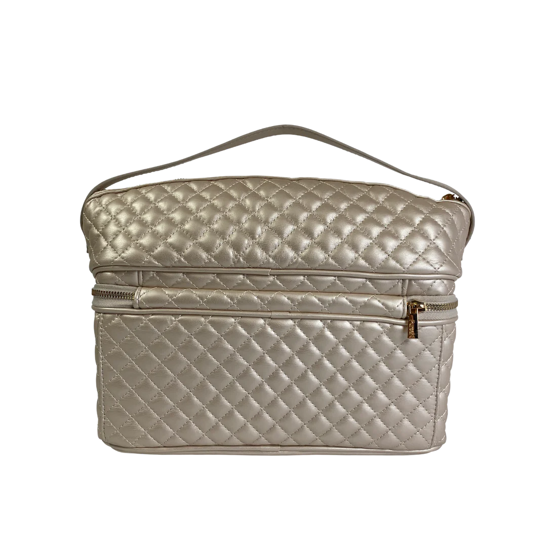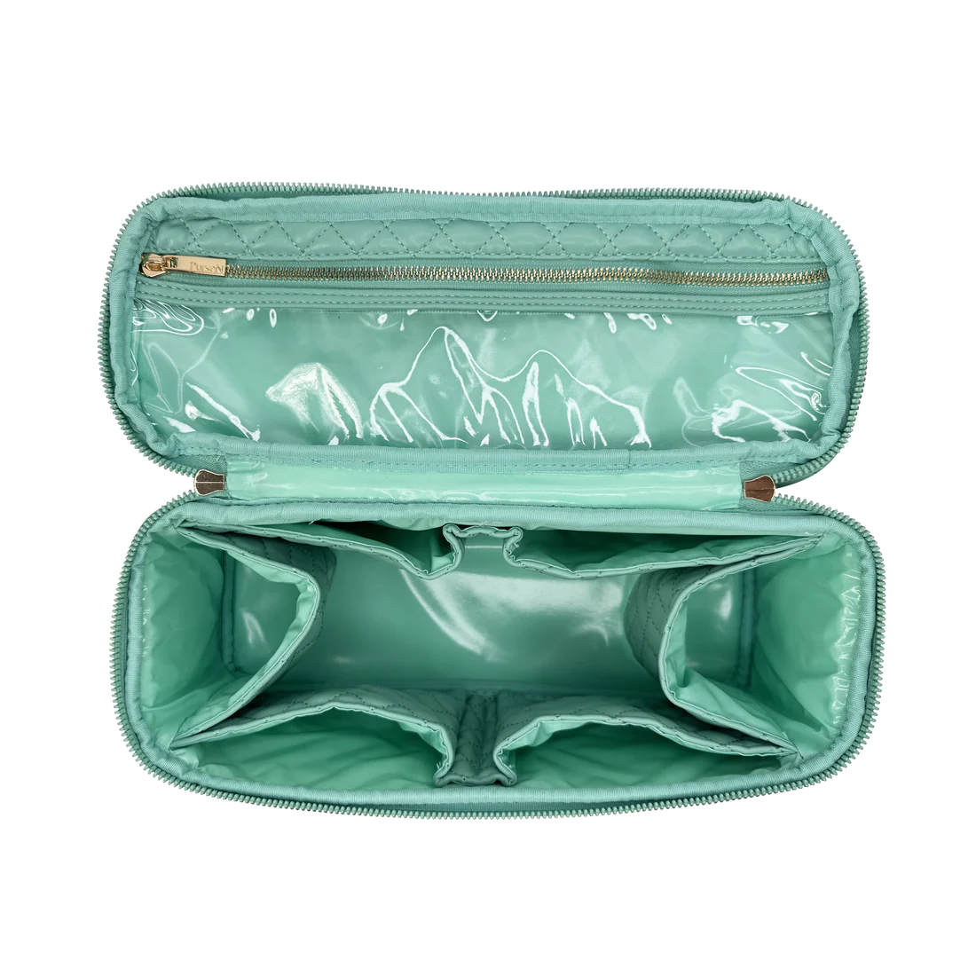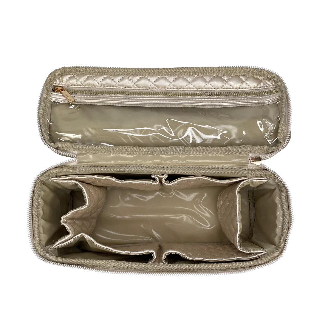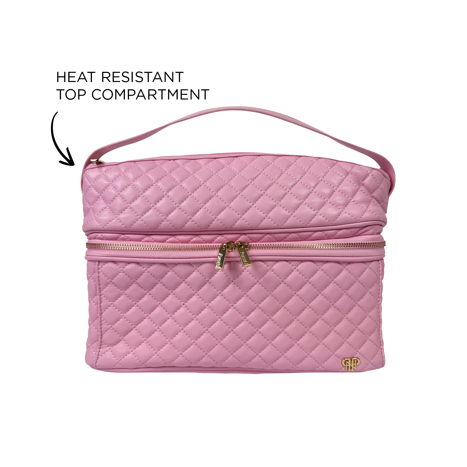 The Stylist Bag is designed for hot styling tools and keeping them separate from your other beauty products. The top compartment features a heat resistant liner so you don’t have to wait to put away your hot tools. The bottom compartment is ideal for larger and heavier items such as bottles, jars, hairbrushes and more. The two combine to make the ultimate toiletry case.